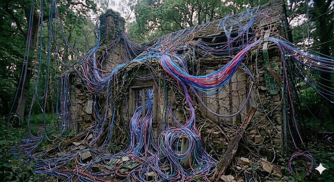 I am not “fired up” about AI one way or the other. I view it through a distinctly practical and perhaps Pollyanna lens: It is a thing we have created that will impact our lives for better and worse but its absence of an emotional core and lived experience will relegate it to certain duties. Humankind will prevail. In fact, perhaps as a coping device - or form of denial – I have chosen to frame AI as a kind of “genre” and imagine a time when we’ll sift through film or music or podcast options and see it listed alongside Drama or Dungeon Synth or Kids & Family as simply that, a genre. An option. But here, on this day, in my car, suffering an AI-induced psychosomatic stroke, I felt the wicked tentacles of AI tightening around my chest, like climbing vines choking an old home with frightening speed.