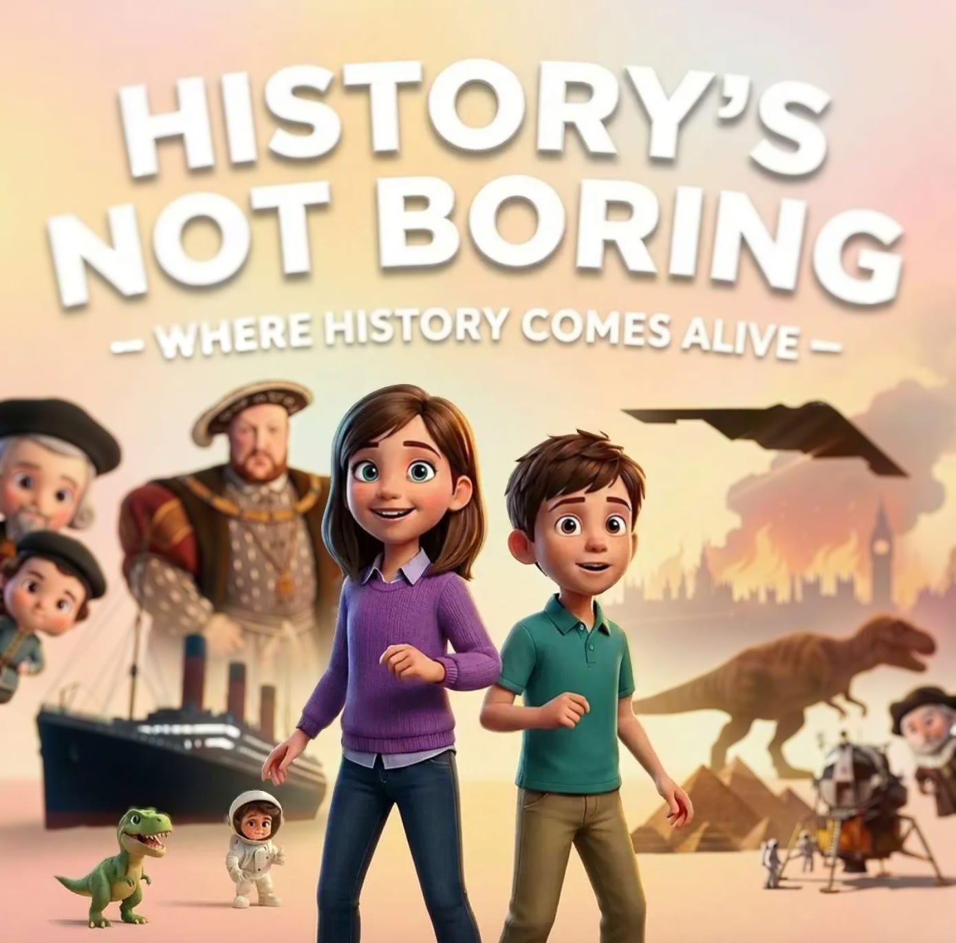 I am stuck in a crawl of traffic on the 10 West near Barrington, a familiar refrain. I am hungover, badly so, also a familiar refrain - increasingly less familiar since having a second child - but nonetheless, familiar. The blazing midday March heat, strange to many, is also familiar. In my aural periphery, beneath the hum of engines and my static of thoughts, is the also familiar banter of Mira and Finn - co-hosts of a podcast called “History’s Not Boring.” This is for-kids-by-kids content, in which these precocious and infinitely curious UK siblings walk fellow kiddos through all manner of historical stuff: What was Pompeii? Who was Mahatma Gandhi? How did they build the Pyramids of Giza and – this week, for some reason – Who Created the Legend of Zelda?